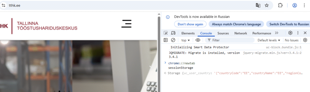 Ava konsool ning kirjuta konsoolile sessionStorage