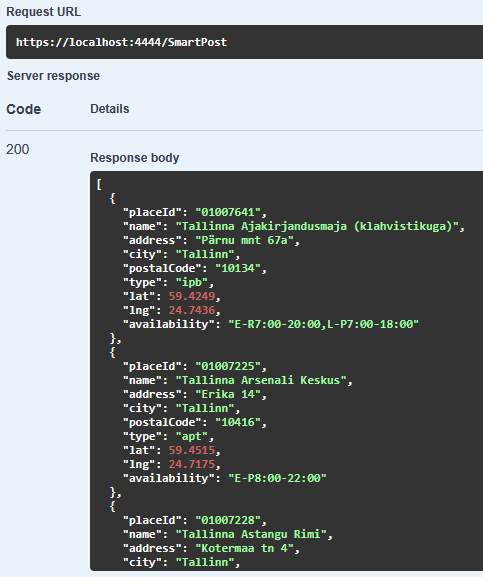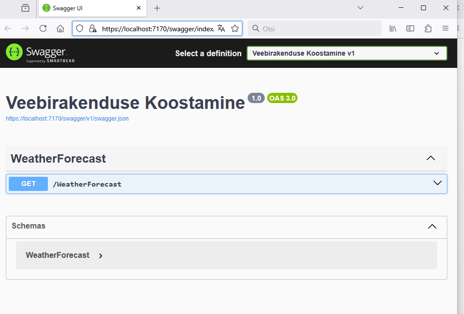 Avatud lingi: https://localhost:7170/swagger/index.html
