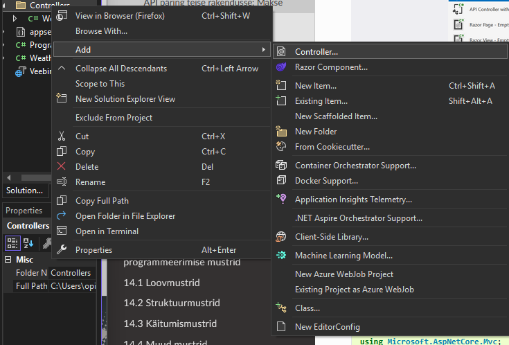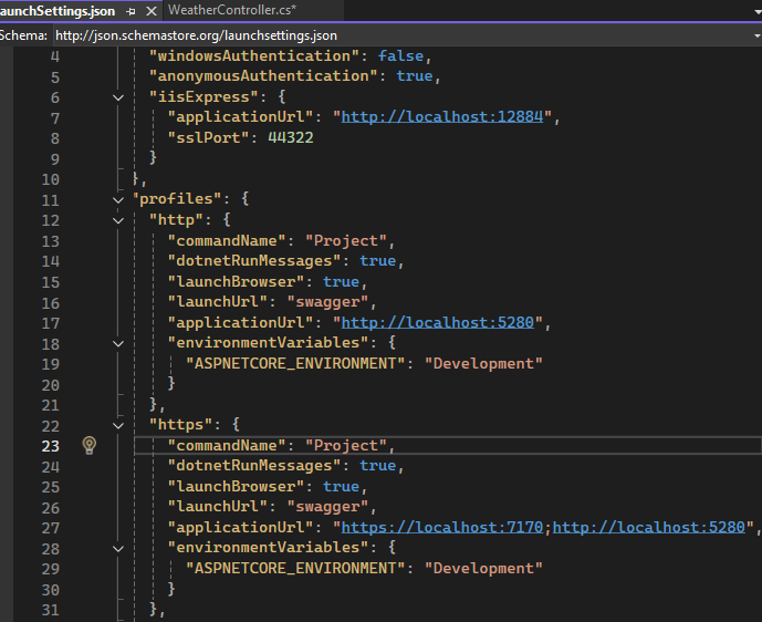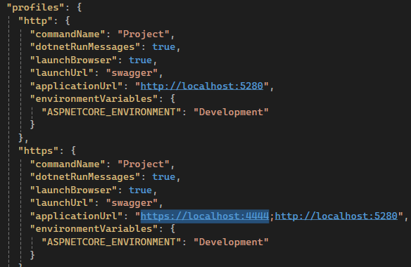 Port on kirja pandud “Properties” kaustas olevas failis “launchSettings.json”, profiles -> projekti_nimi -> applicationUrl taga. Soovi korral võid seda vahetada. Lihtsuse huvides vahetan selle ära: