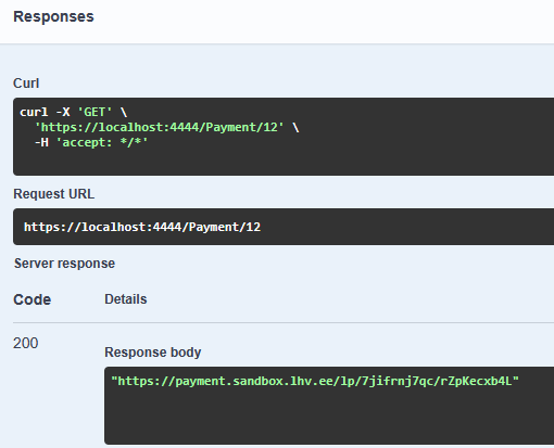Eesrakendusele tagastatakse return Ok() sees EveryPay poolt saadetud makselink (payment_link).