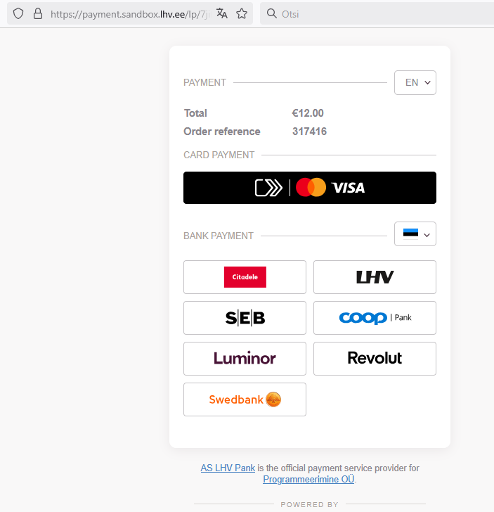 Antud API otspunkti eesmärk ongi genereerida EveryPay link, mis on vaja eesrakendusele anda ning mis suunab kasutaja täpselt selle lingile.